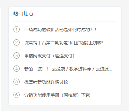 1.热门焦点是根据资讯阅读量从多到少按顺序取前6位;