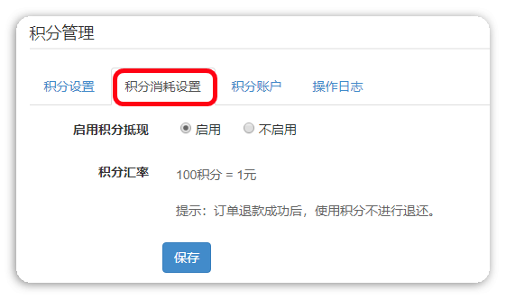 路径: 【管理后台】-【营销】-【营销管理】-【积分管理】-【积分消耗设置】;