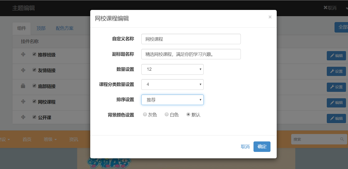 设置路径:【管理后台】-【运营】-【web装修】-【已购主题】-【简墨主题·管理】,编辑网校课程模块,排序方式选择“推荐”。