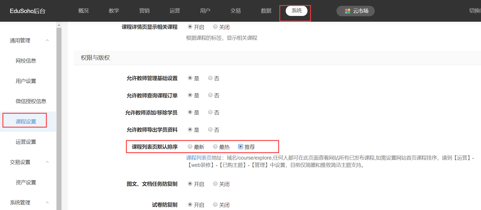 设置路径:【管理后台】-【系统】-【课程设置】-【课程】