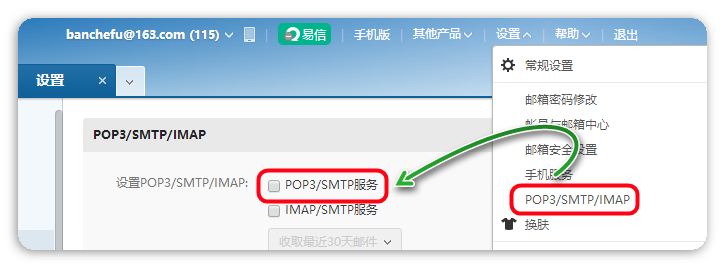 - SMTP用户名:banchefu@163.com(邮箱地址);