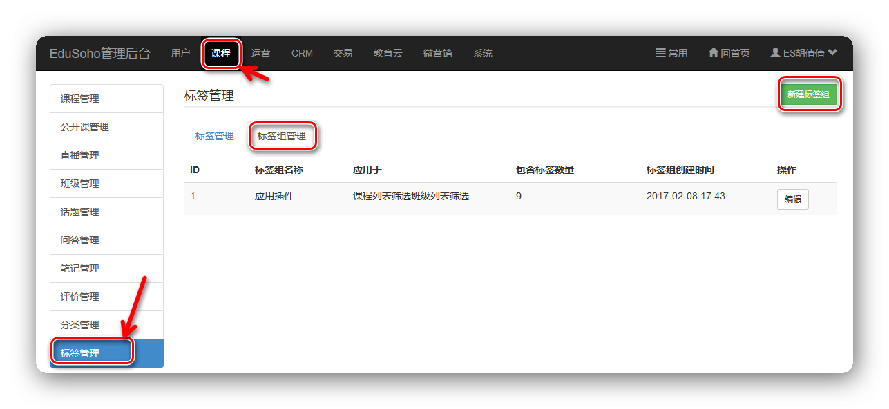标签组是标签的集合,可以在课程/班级列表页用标签组的方式分类课程/班级,同时也是新增一个筛选条件。
