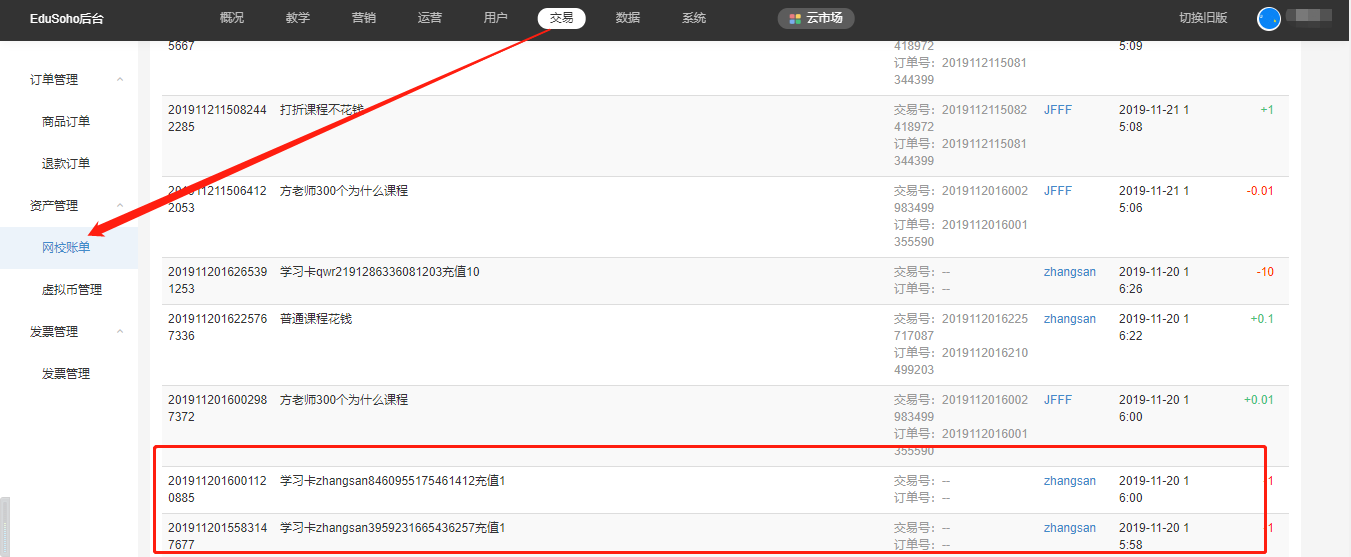 学习卡充值无订单号和交易号,学习卡只能用于虚拟币充值。