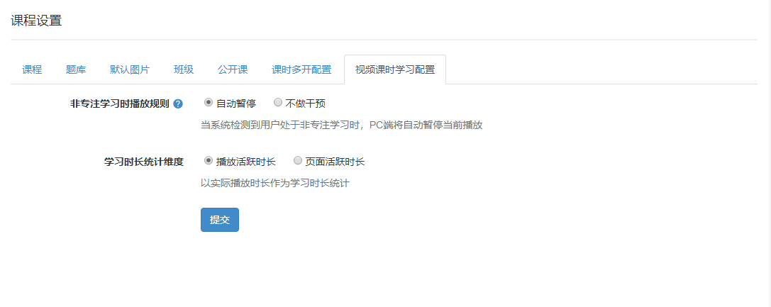 学习时长统计维度选择播放活跃时长:以实际播放时长作为学习时长统计;