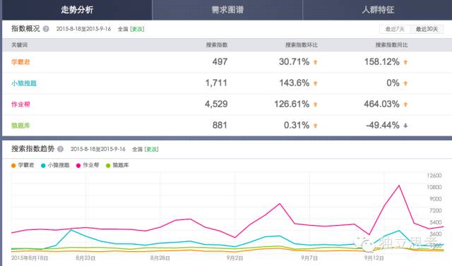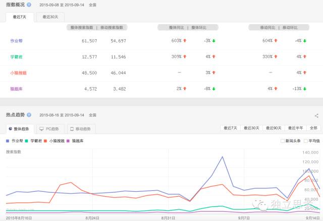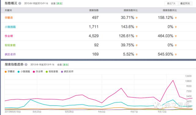 1)和拍题扫题相比,教育O2O的搜索量少得简直可以忽略不计。