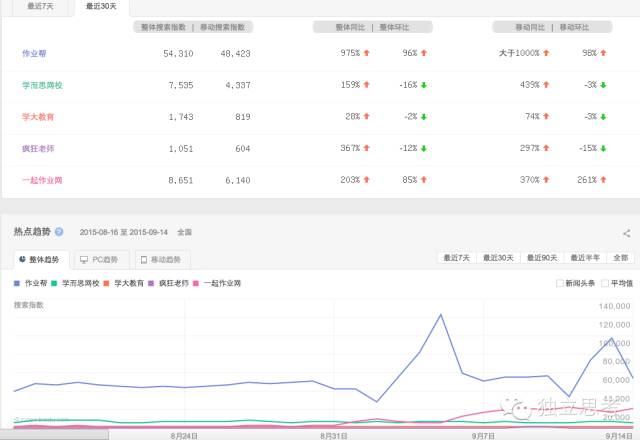 所以你之前看衰或看好什么领域的,也不要轻易用搜索指数的数据作为你判断的唯一依据。尤其是哪些传统的K12一对一机构千万别拿这个当成自己自嗨的工具,这些数据只能告诉大家的是教育O2O没那么嗨而已,但不等于它们目前不嗨,你就能嗨了。