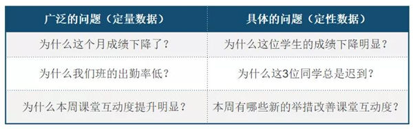 尽管能更加客观的反应全校、年级或者班级在某个维度上的整体趋势,但定量数据也有一定的局限性。一般情况下,在使用定量数据进行分析解决整体趋势的问题后,还需要进行后续的定性调查。