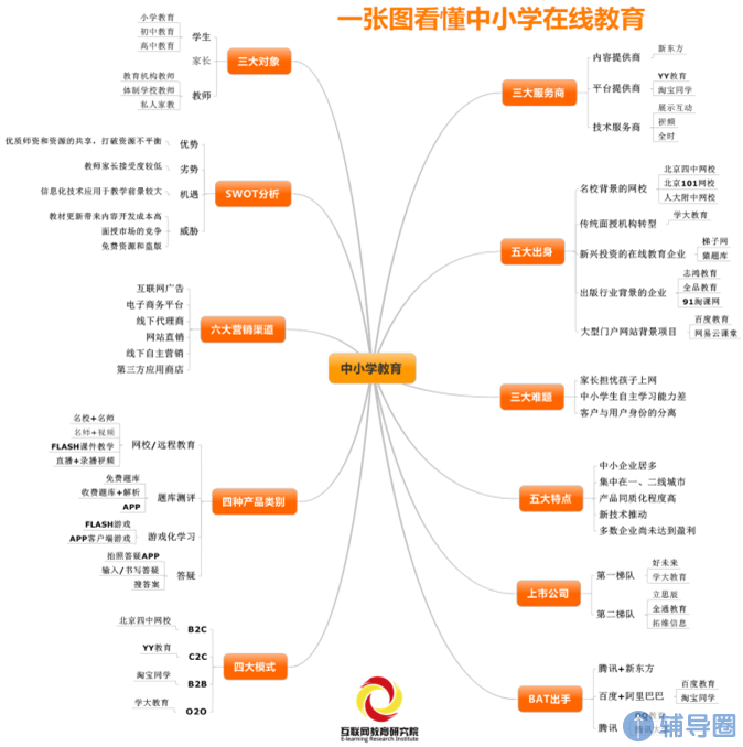 中小学教育近年来是在线教育行业中一个非常热门的领域,有大量的资本涌入,同时也有许多企业迭起和产品技术诞生。究竟这个领域有哪些元素是值得我们关注的,有哪些重点是需要注意的,互联网教育研究院用一张图带你看中小学在线教育。