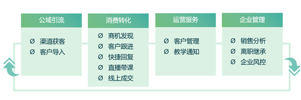 可以帮助企业构建从公域引流、客户跟进、客户转化、客户服务到客户管理的客户全生命周期运营闭环。