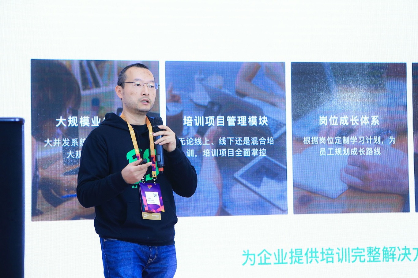 在GET大会上进行分享的EduSoho首席架构师陆庭生先生提到EduSoho让教育机构零门槛实现互联网+。首先EduSoho将会通过“网校系统+技术服务+网校内容+运营服务”提供完善线上教育整体解决方案。其次EduSoho始终秉承开源的状态和技术驱动的理念去做世界级的产品,阔知产品技术人员占比超60%。他还特别提到了“ES企培”产品,这是一个完全开源的产品,是一个免费的企业培训系统。最后阔知拥有专属的教育云服务为网校运营降低成本,提供多重数据安全防护。