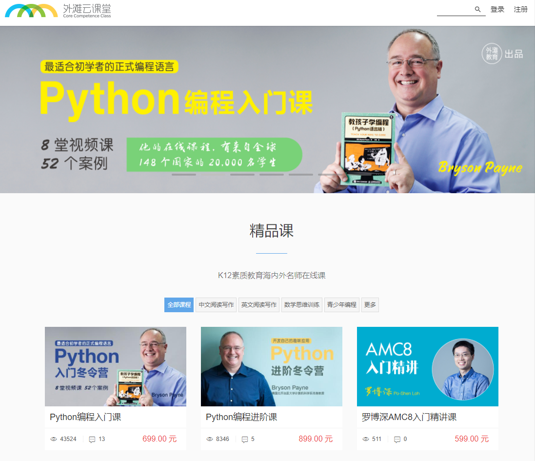 外滩云课堂专注于K12核心素养教育,目前已经形成以中英文阅读写作,批判性思维训练,数学思维训练,和青少年编程与计算机科学为主线的近六十门课程,累计学员数达到2万多人。此前,原外滩课堂的账号也正式迁移至外滩云课堂中。