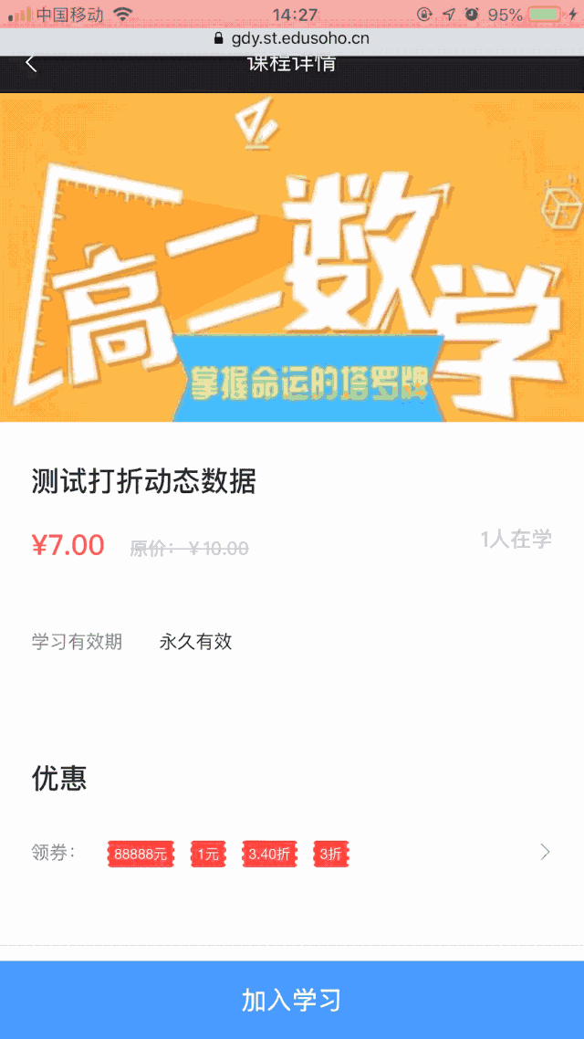 另外,开启新版微网校后,学员可以在手机浏览器内访问领券链接并完成领券的操作。
