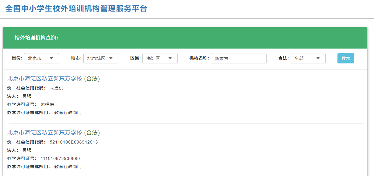 全国中小学生校外培训机构管理服务平台为家长提供选择培训机构提供依据,哪些是合法的机构,哪些是黑名单机构,一查便知。