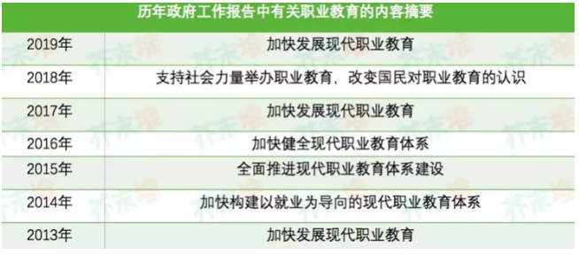 自 2013 年以来,职业教育已连续7年被政府工作报告重点强调。