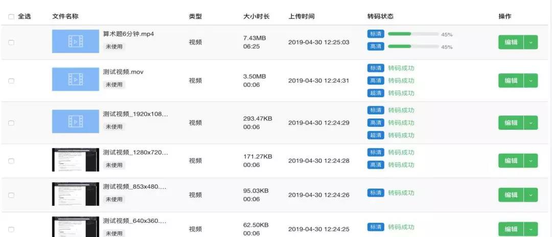 此外,另一个功能的提升,就是给网校提供了一个可视化的视频转码流程,老师可以通过以下页面,来了解到视频实时转码的进度和转码失败的原因及解决方案,更好的了解转码进度,合理安排网校日常备课工作。