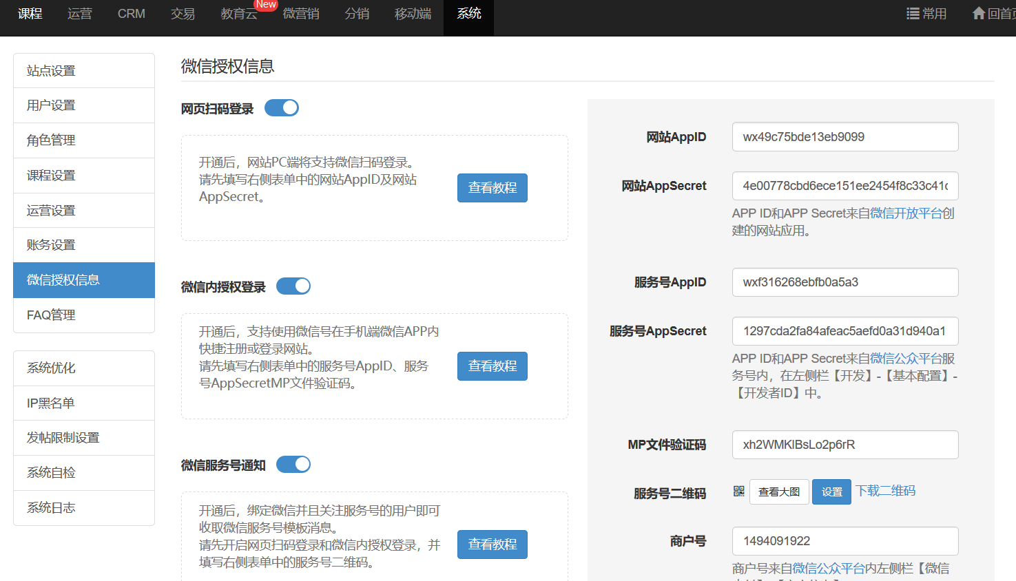 如果网校之前没有开通过微信内授权登录,则需要先开通“微信内授权登录”。