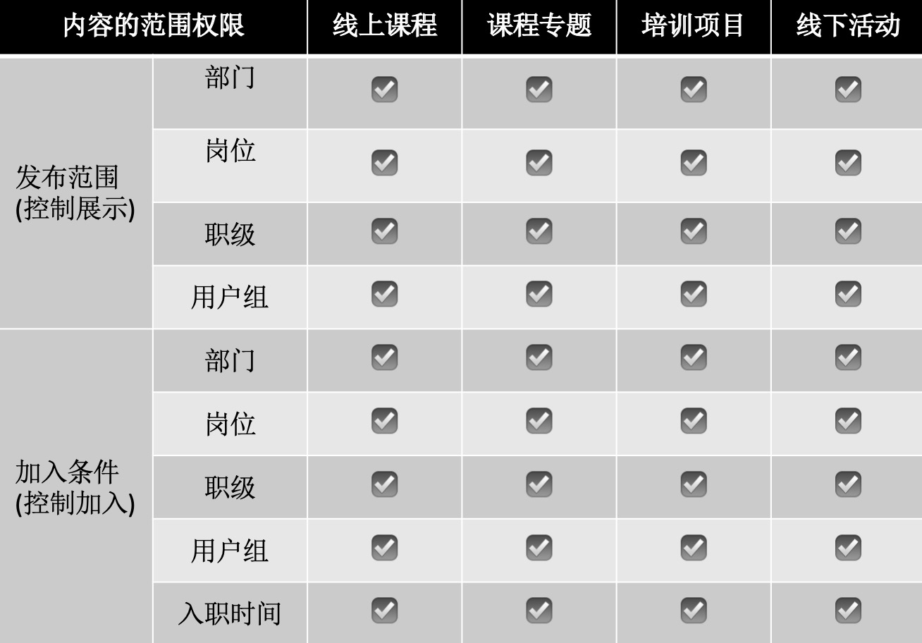 根据培训内容开放受众不同,可以做到对内容的访问与加入权限进行控制. 以满足企业精准的将培训内容推送触达到不同人群,而不用担心越权风险.