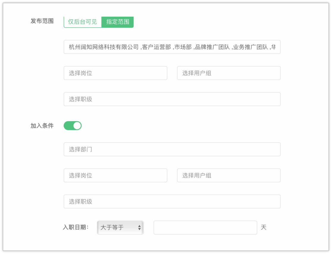 EduSoho企培版 5.0.0 在线上课程、课程专题、培训项目、线下活动中引入了内容开放机制, 新增了发布范围的设置项.