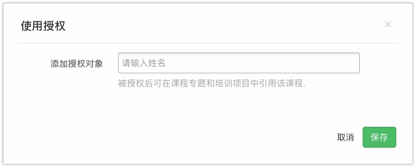 针对公司新人培训,培训负责人可能需要使用来之财务部管理维护的《公司报销报销制度》线上课程来组织面向新人入职的《新员工培训项目》,所以财务部的课程负责人可以将《公司报销报销制度》这门课课程通过“使用授权”授权给培训负责任使用.