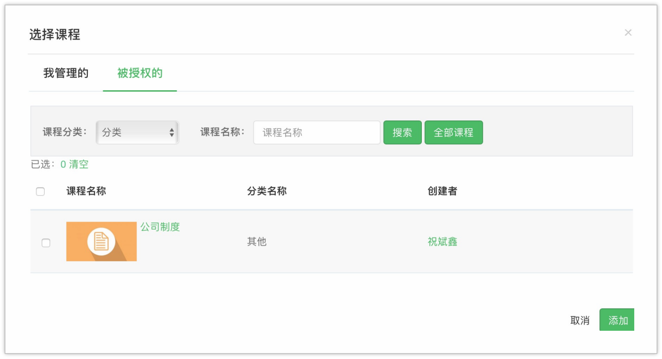 这些资源的管理者可以将这些资源授权给其他的用户使用,被授权的用户仅可以在具体的培训业务中使用这些资源,而不会获得管理权限. 实现企业内的培训资源共建共享,提升了在严格控制下的资源流通效率.