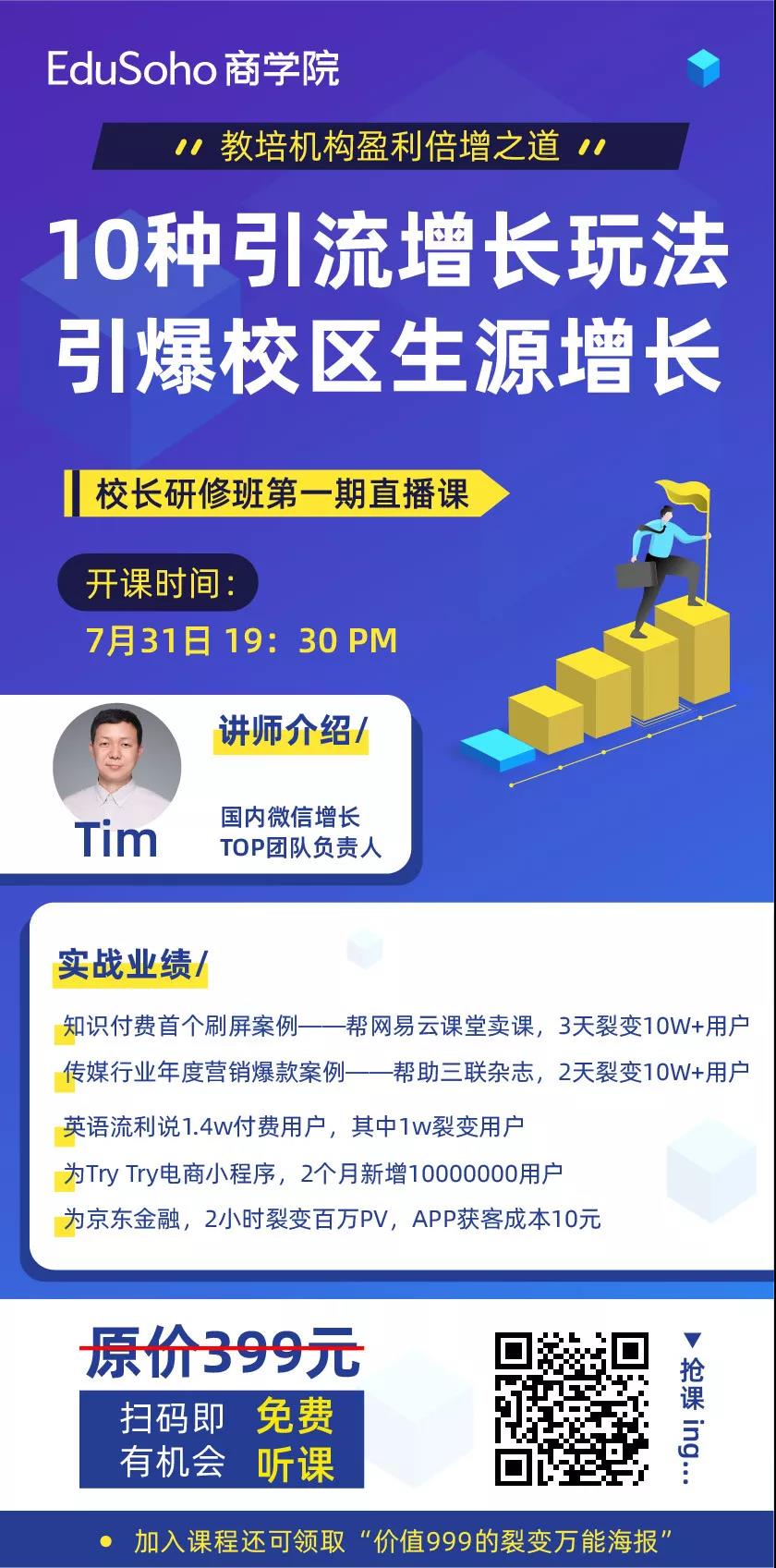 在这个挑战与机遇并存的时代,流量的成本急剧增长。这个变化,给了校长和运营人员无限施展自己才能的舞台。运营人员的核心竞争力-即低成本获客的能力,得到了每家机构前所未有的重视!
