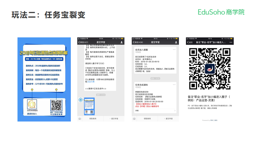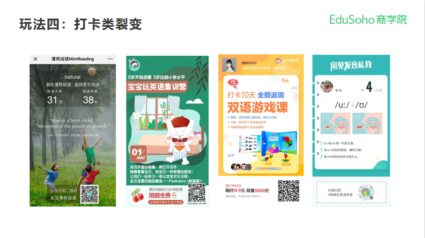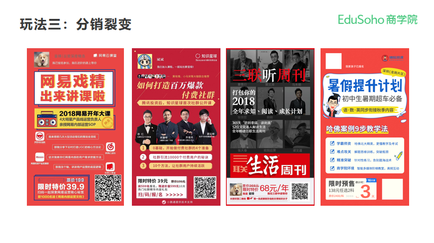 诚如TIM老师所言,机构运营是一门不断总结不断创新的学问,这10中裂变增长的玩法也是TIM老师及其团队不断更新迭代总结出来的。并且在传授这些玩法的同时,TIM老师还强调了与实际结合中需要注意的问题。接下来,我们将把TIM老师的裂变10种玩法跟大家一一展示。