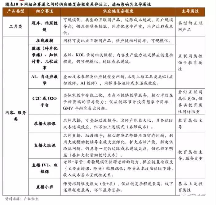 纵向来看,需要教研的投入,形成鲜明特色的课程体系,这是线上教育质量保证;需要优秀的师资,能驾驭课程,这是线上教育的学习体验保证;需要辅导老师解决学习过程中的问题,包括进度、难点、消化、反馈,这是学习效果的保证。