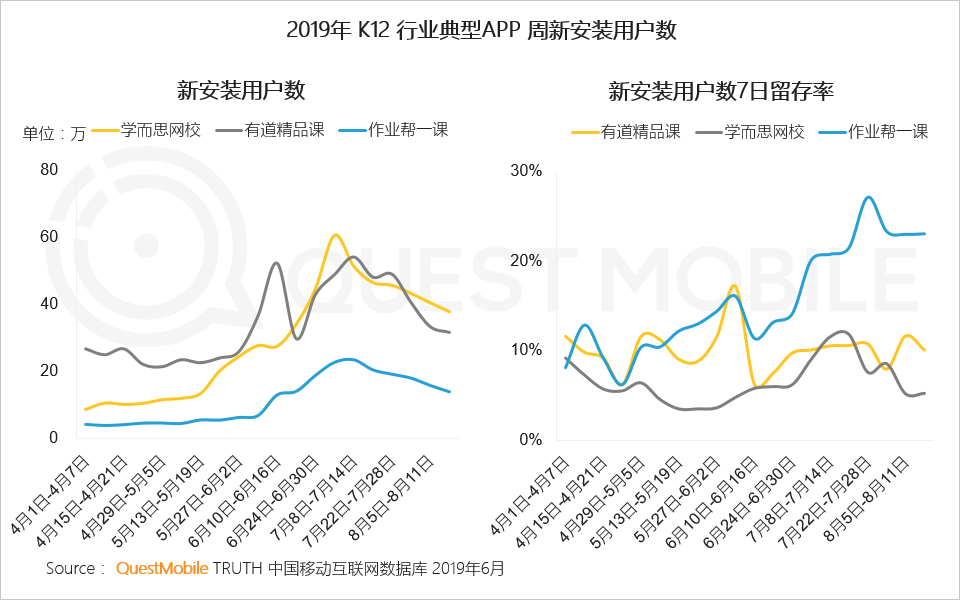 不过,K12也是竞争最激烈的领域之一,以2019年暑期为例,低价拉客、广告轰炸……各类APP引流、导流堪称八仙过海各显神通,目的只有一个,拉新,然而,留存却成了问题……