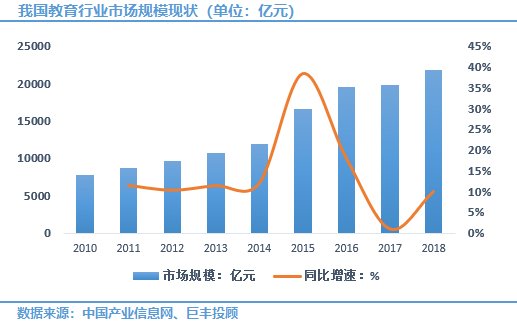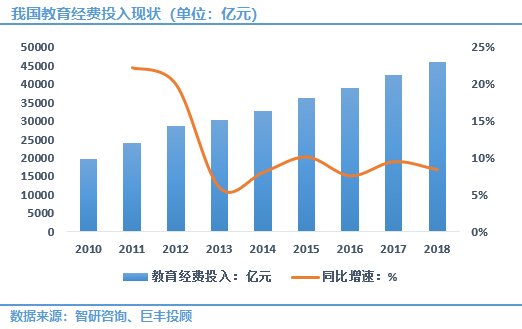 行业之所以产生了一个万亿级的市场空间,主要在于我国在教育方面的投入长期保持着稳定增长。数据显示,2018年全国教育经费总投入为46135亿元,同比增8.39%。其中,国家财政性教育经费为36990亿元,比上年增长8.13%。可见国家对教育行业的重视很高。