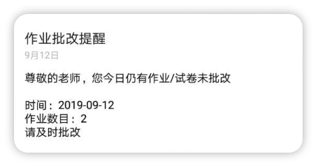 在作业/试卷批改环节,系统会根据设置的时间,为过去24小时内有作业/试卷未完成批改的教师发送提醒。