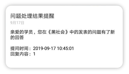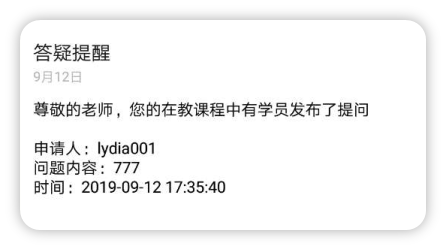 当老师回答了学员的问题后,会发送通知给提问学员,让学员。(其他学员用户回答问题时,不会发送通知。)