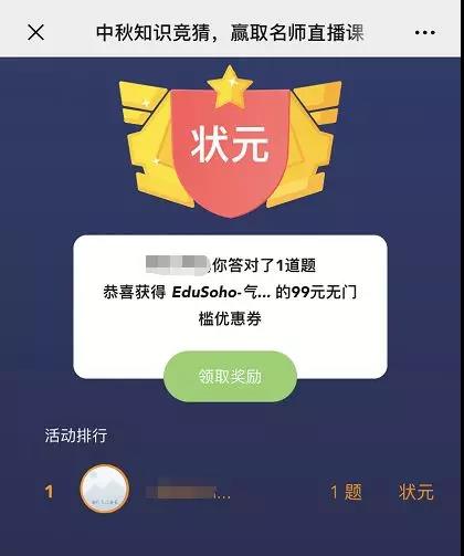 活动引流:网校可以把优惠券和EduSoho微营销中的竞答功能结合,在节日等时间在新媒体平台发布竞答活动,根据答题结果给参与活动的用户发放优惠券。