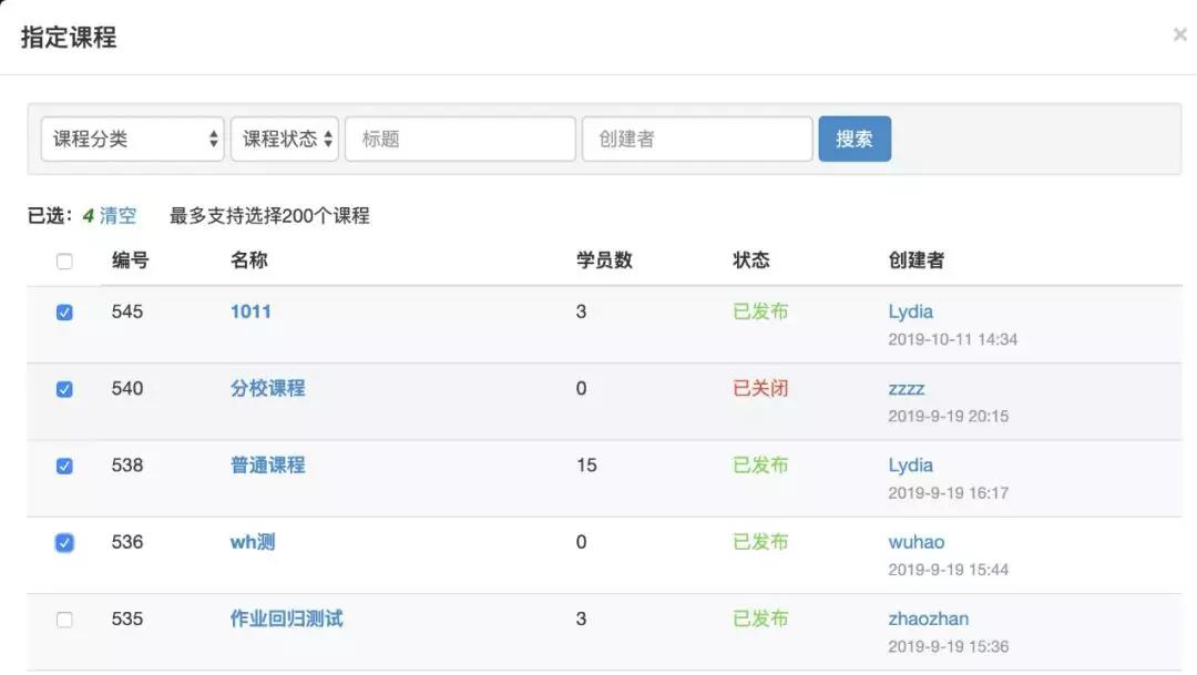 优惠券的适用范围从原有的单个课程或分类课程,改变为可自由设定为多个课程或者班级,最多支持 200 个课程或班级。