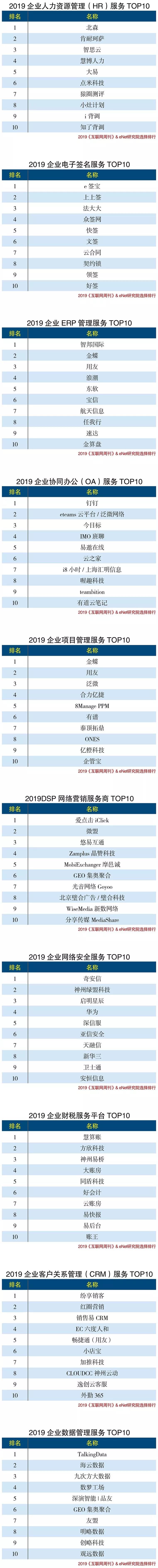 近日,《互联网周刊》& eNet研究院联合发布了“2019企业服务(TO B)排行榜”。具体详情如下:
