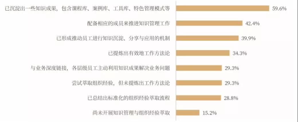 调研发现,目前85%左右的企业已着手进行组织经验萃取与知识管理工作,通过团队共创、深度访谈等方式,提炼出可复制的工具、流程、方法论,以及课程与案例等知识成果。而企业大学深入业务一线,聚焦典型情境,找到关键的挑战点,组织业务专家总结案例、萃取现有实践经验,将集结而成的课程、案例、项目等学习资源快速输送给员工,已逐渐成为常态。