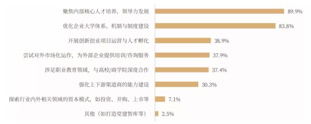企业对企业大学的职能规划有所延展,如企业大学开始承接企业生态链的培训、企业文化的宣导和推广等工作;