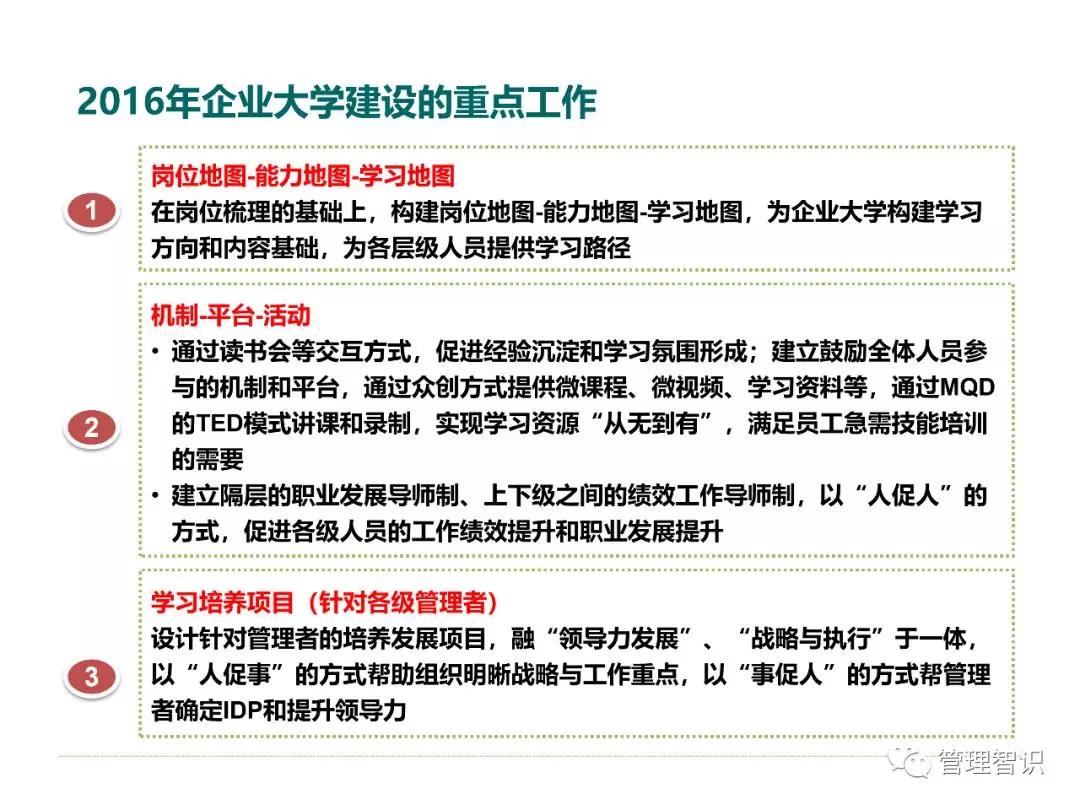目前越来越多具有前瞻性的企业家开始致力于内部培训培养力量的建设和知识的内化,因此企业大学便在近30年里,有国外到国内,各国际化知名企业的自有企业内部大学便不断应运而生。那么企业大学应该如何设计与建设呢?以下是分享给大家的一些关于企业大学设计与建设思路图解。