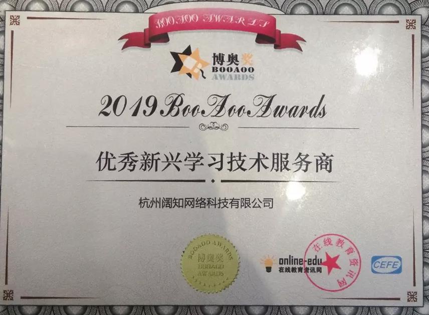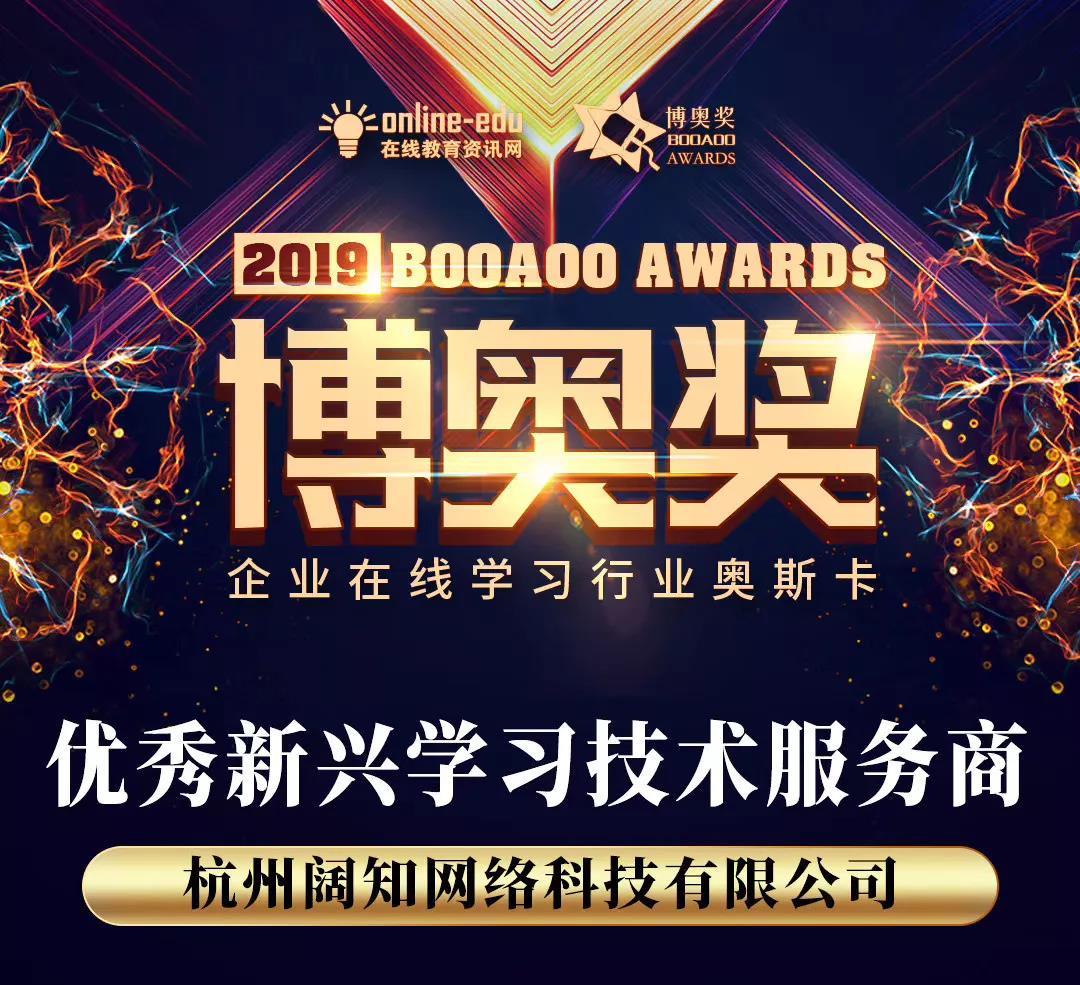 “博奥奖”自2008年发起至今已历时10个年头,被誉为企业在线学习界“e-Learning 奥斯卡大奖”,参选企业近千家,已成为企业在线学习行业最具影响力的奖项,阔知能够凭借多年积累的企业服务能力获得“优秀新兴学习技术服务商”奖,代表着其优质的产品和技术服务足以得到整个企业在线学习行业的支持和认可。