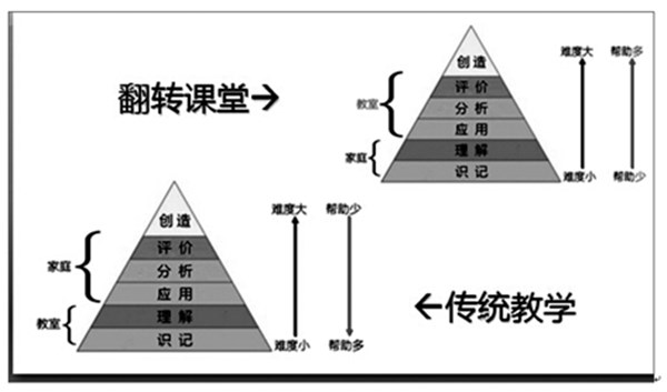 传统的教学模式是老师在课堂上讲课,布置家庭作业,让学生回家练习。与传统的课堂教学模式不同,在“翻转课堂式教学模式”下,学生在家完成知识的学习,而课堂变成了老师学生之间和学生与学生之间互动的场所,包括答疑解惑、知识的运用等,从而达到更好的教育效果。