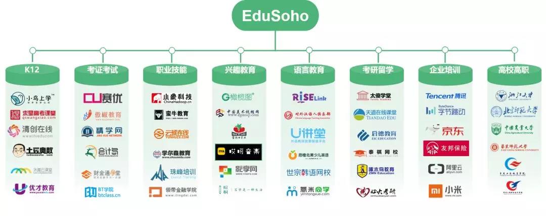 除此之外,EduSoho目前已帮助超过10万家教育机构及企业以极低成本开展在线教育,客户覆盖K12、考证培训、职业技能培训、语言教育、兴趣教育、企业培训等多个类别,在在线教育解决方案细分领域用户数行业第一,对于在线教育行业获客方式、获客成本、教育模式发展趋势等方面还有更多干货亟待和大家分享。