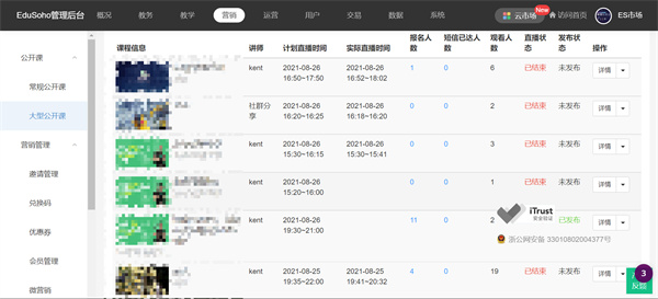 提供”引流-体验-成交-教务-教学-运营“全流程的在线教育系统