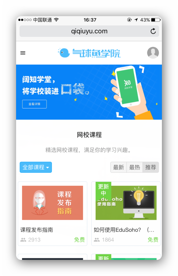 PC端:EduSoho在pc端不同宽度浏览器下的呈现效果: