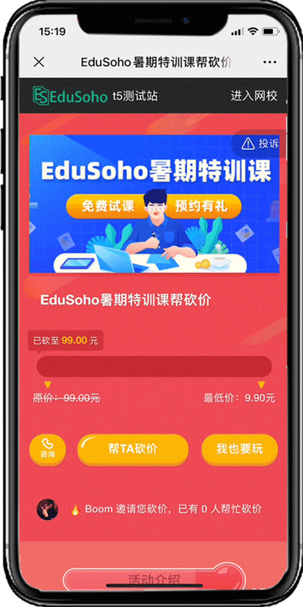 如何吸引参与者转化为砍价发起者?核心还是设置砍价的课程/班级要足够吸引人,也可以参考之前拼团模式提到的“爆款”,家长的接受程度高,能够感同身受,自然愿意拉动好友帮助砍价。
