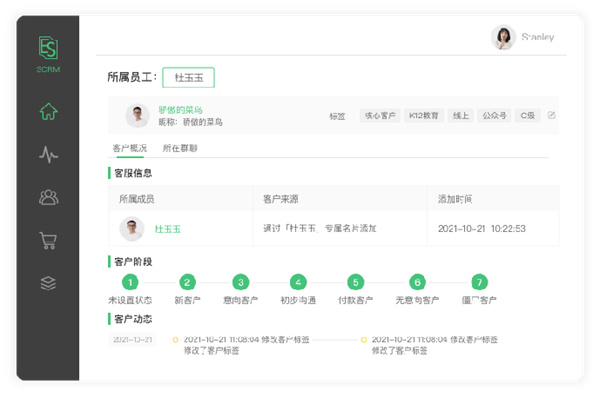 EduSoho销客助手(SCRM系统)可以自定义客户需求阶段和客户信息,客户跟进阶段及客户动态信息一目了然,利于业务人员掌握客户的最新状况。