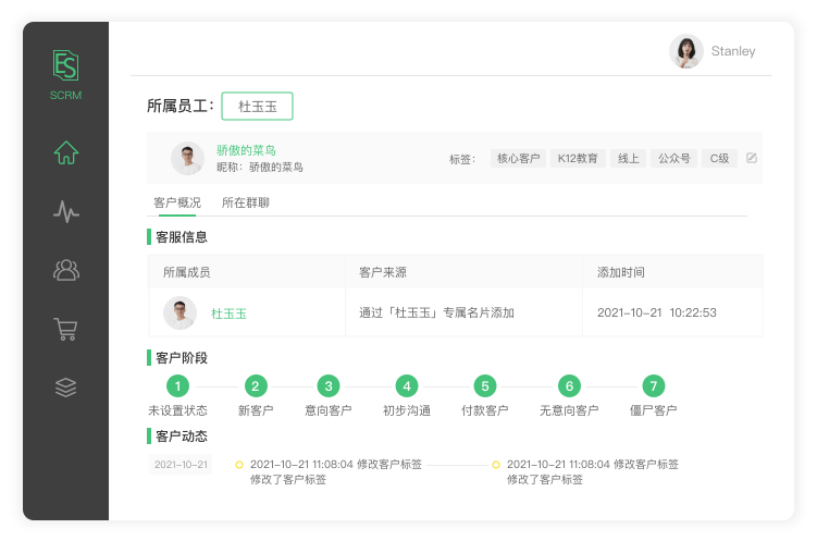 在记录客户信息的时候,可以借助EduSoho销客助手,将客户的基本信息和意向阶段进行标注,尽可能的丰富用户画像,有助于销售人员了解用户来源渠道、用户需求等等。