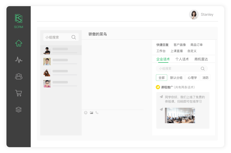 这里可以提前预设几个话术模板,如果是线上交流的话,可以提前将相关话术复制到话术模板之中,从而提高销售人员的工作效率。