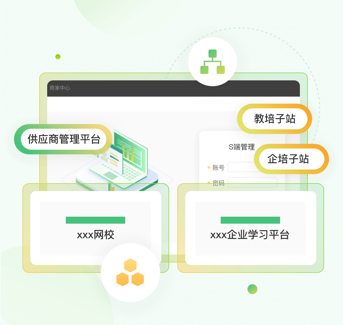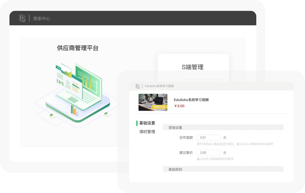 EduSoho分课支持EduSoho教培系统及EduSoho企培系统作为子站点,分别适用于培训机构对外招生授课及企业内部培训,功能详情可查看对应产品介绍